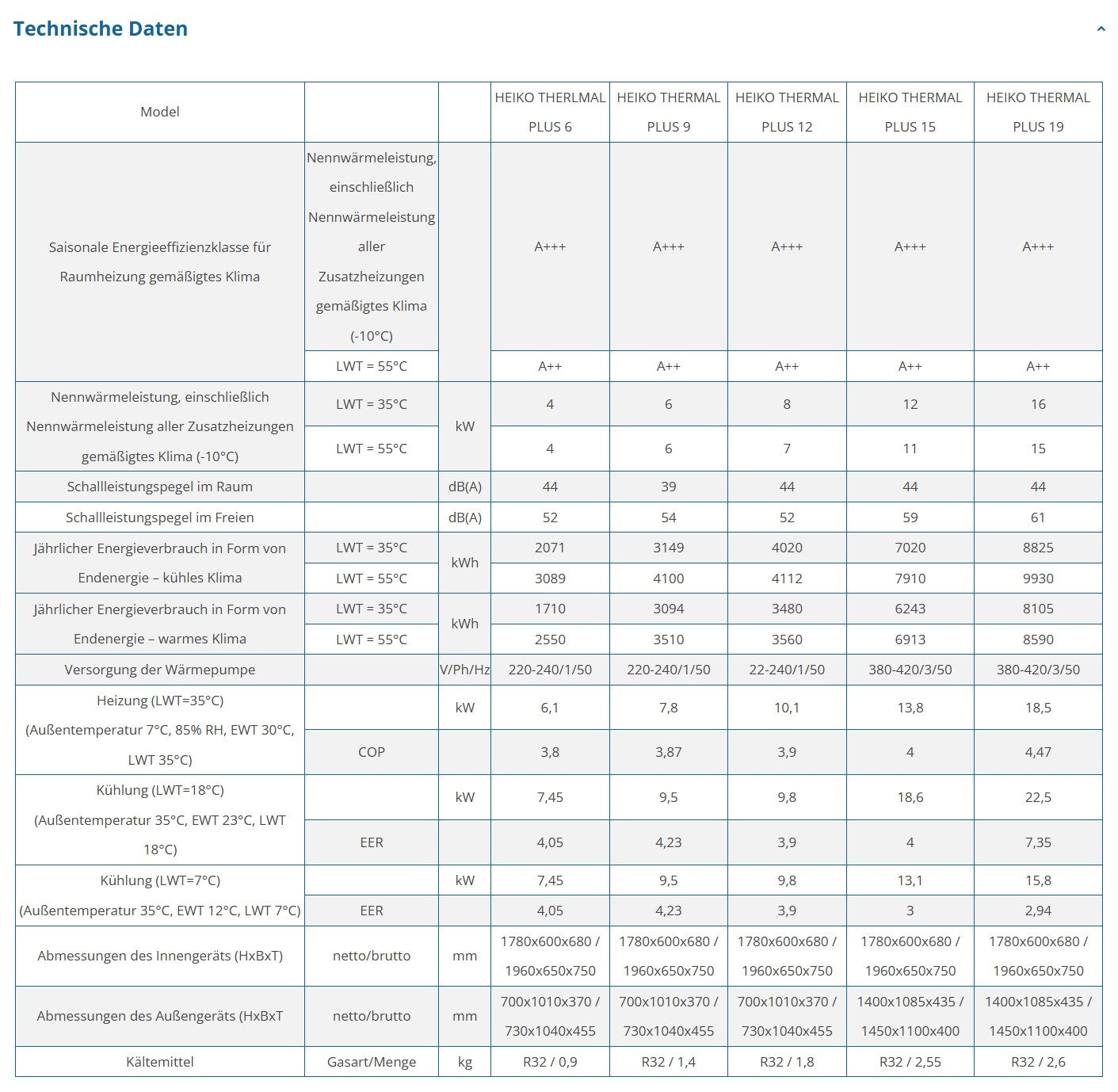- Kältemitteltyp - R32