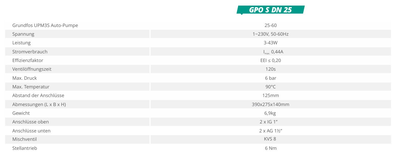 Pumpengruppe GPO S Grundfos DN 25 - Pumpengruppe für Zentralheizung - mit Dreiwege Mischventil mit Servomotor - Grundfos Umwälzpumpe